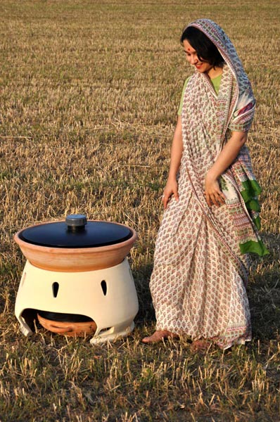The simple design is the true winner here. It consists of two ceramic parts stacked together. Inside the top piece is a black container where the salt water goes. The sun heats the container and turns the water to steam. Pressure starts to build and the steam is forced down a tube into a container in the other, lower part. Therein the steam will condense against the lid and the basin of the container will collect it.
