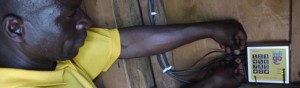 The IndiGo system consists of a low-cost solar panel, a battery unit with inbuilt mobile phone charger and a high efficiency light emitting diode (LED) lamp. Users put credit on their IndiGo device using a scratchcard, which is validated over SMS using a standard mobile phone.