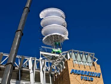 The 18-foot-wide helix turbine will generate approximately 40,000 kilowatt hours per year (about the same energy used to power four homes) Both CSU and the Cleveland Indians hope that the installation of this pioneering wind tower will spur the development of alternative energy in Northeast Ohio.